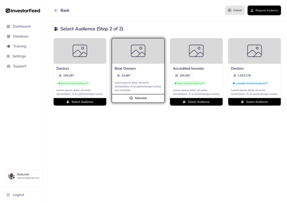 Schedule DemoImport Our Proprietary InvestorAudiences™ Directly Into Your Advertising Accounts