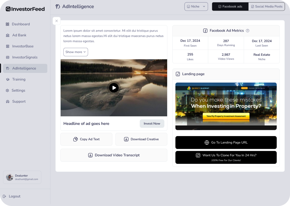 Our Proprietary A.I. Algorithms Scan Ad Platforms For Highest Performing Ads/Websites Across 20+ Investment Niches