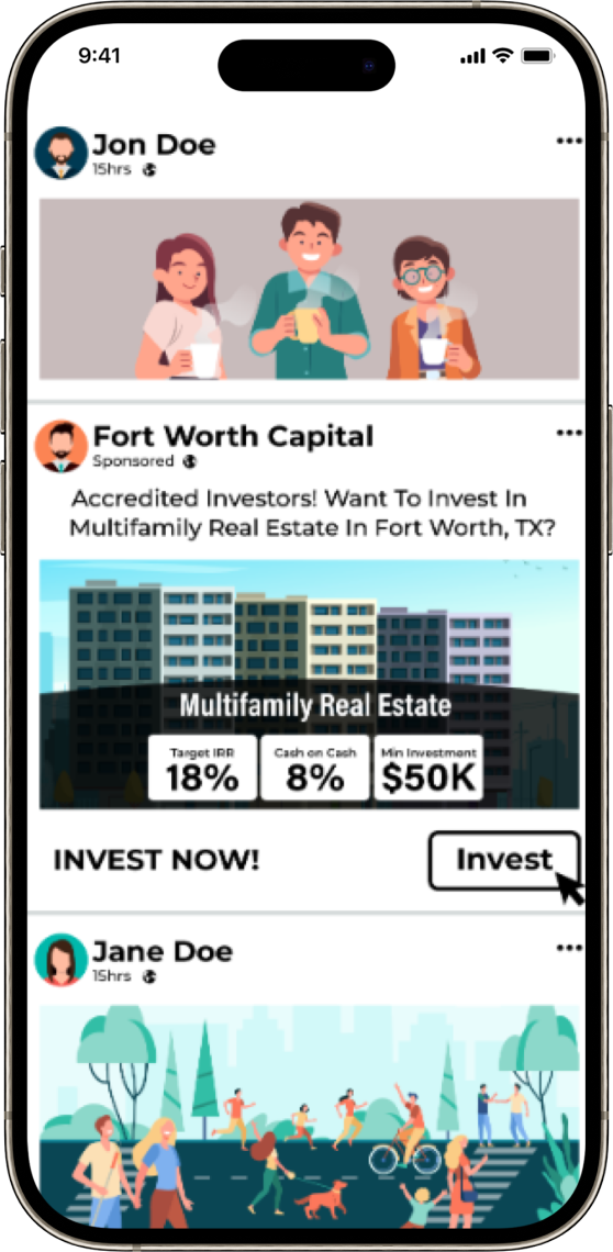 Gives High Net-Worth Investors Ability To View Quality Investment Opportunities Non-Intrusively Inside Their Social Media Newsfeed Online... On Their Own Time… Without Any Annoying Interruptions (ZERO Cold Calls Or Cold Emails!)