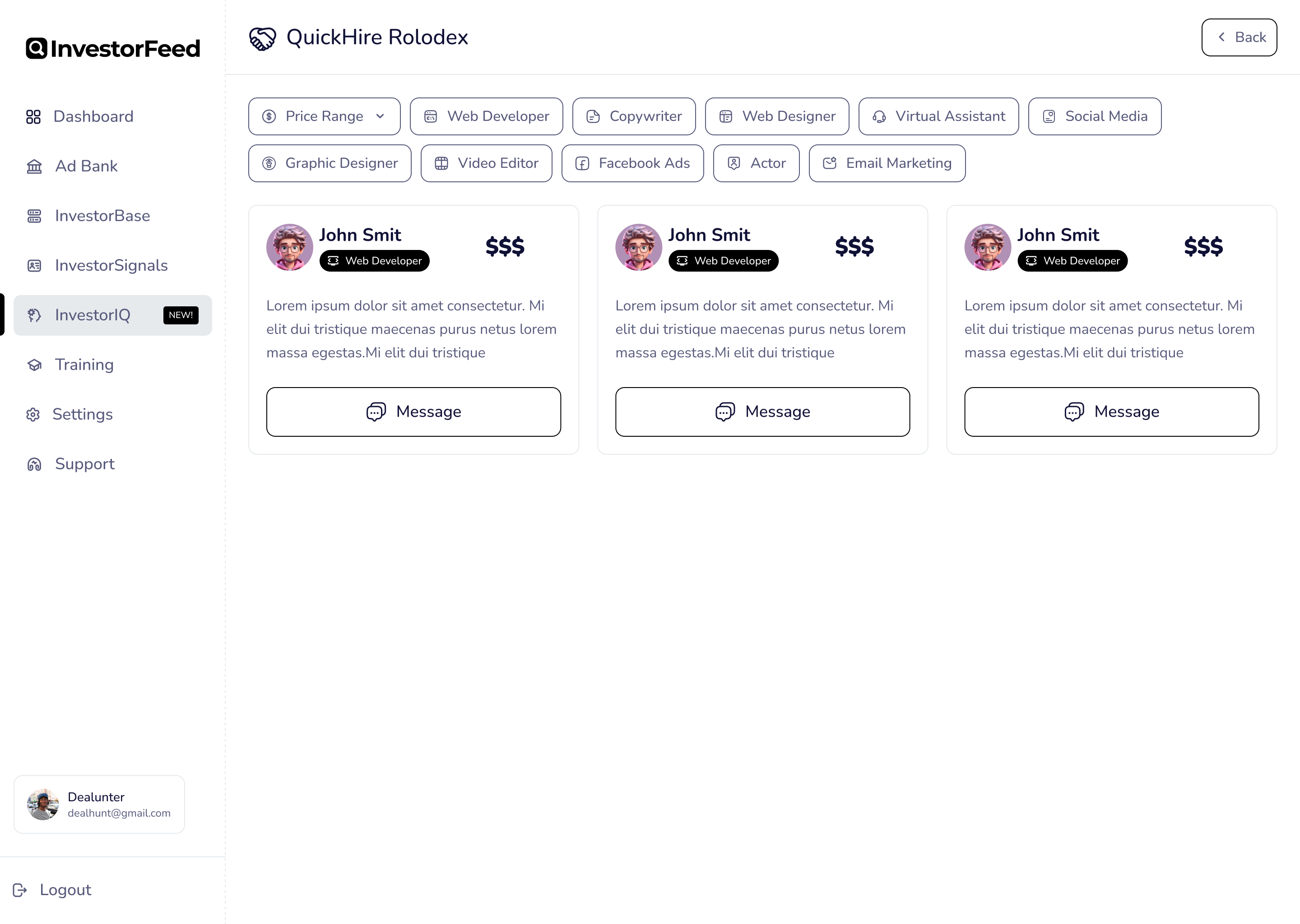 “Seeing great success with InvestorFeed, currently booking appointments with 3-5 high net-worth prospects per day without spending much on ads”